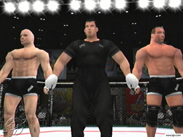 La primera diferencia notable frente a los demás juegos de lucha queda plasmada en el apartado visual. Los personajes están formados por un gran número de polígonos, tienen animaciones muy suaves y realistas y cuentan con un gran nivel de detalle en sus respectivos diseños. Campeones como Mark Coleman, Maurice Smith o Bass Ruthen se reconocen enseguida gracias a un excelente trabajo artístico que reproduce fielmente sus rasgos, y además puedes ver expresiones de dolor o tensión mientras pelean. Un punto a favor de la espectacularidad y la fiel recreación de las retransmisiones UFC televisivas es la intro del luchador: este camina desde el vestuario al octágono como en los combates de boxeo, con música y luces y animando al público, y cuando llega al octágono el arbitro le hace su presentación. Espectacular y muy conseguido.