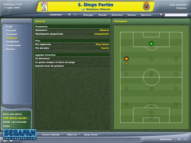 Una vez que el jugador se encuentre al frente del equipo de su elección, descubrirá que dos de las tareas que se solían hacer nada más hacerse cargo del mismo, delegar la responsabilidad del entrenamiento en el segundo entrenador (lo hacía el 90% de la gente, no tengáis rubor en reconocerlo) y completar el cuerpo técnico con empleados de primera categoría a sueldos ridículos ya no son afrontables de igual modo. En el caso de los entrenamientos simplemente porque esa opción ya no existe y tendrá que ser el propio usuario el que se haga cargo de la labor que afortunadamente ha dejado de ser tan farragosa como antaño, limitándose al control de la intensidad de los diversos aspectos del entrenamiento (fuerza, tácticas, disparo, control de balón...). Obviamente una carga de trabajo mayor influirá a corto plazo de forma positiva sobre las cualidades de los futbolistas, pero también hará que se cansen más durante la temporada y aumentará el riesgo de lesiones. Llama mucho la atención que junto a esta variación, que parece encaminada a propiciar una mayor implicación del usuario en la labor de entrenador propiamente dicha, se haya incluido otra que limita bastante la planificación de las temporadas desde ese punto de vista, como son las vacaciones automáticas. Al contrario de lo que sucedía el año pasado, no es posible escoger el tiempo de descanso de los futbolistas y la pretemporada comenzará cuando el programa lo estime oportuno, cosa que puede ser un serio quebradero de cabeza si el club ha de afrontar atípicos meses de verano con partidos de Intertoto o de previa de Copa de Europa. En cuanto a la contratación de empleados, esta se ha vuelto bastante más dificultosa (realista, tal vez sería una expresión más adecuada) y ya no es posible encontrar libres a ojeadores con una capacidad de juicio perfecta o a preparadores que sean un hacha en todas y cada una sus áreas, en primer lugar porque su número es mucho menor ahora y los que existen, exceptuando algún "mirlo blanco", suelen estar contratados por clubes de cierta importancia y no será fácil sacarlos de ahí si se dirige a un equipo modesto.