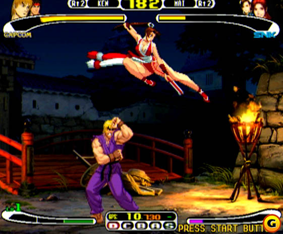 Allá a principios de los años 90 los videojuegos estaban abanderados por los salones Arcade, y en los salones Arcade la máquina que siempre ocupaba el centro de atención sólo podía ser una de estas dos, Street Fighter II o Fatal Fury 2. Los jugones que alrededor de estas máquinas nos concentrabamos soñabamos con poder ver algún día a Ryu pelear contra Terry, y demostrar de una vez por todas quién era el más fuerte. El sueño se confirmó allá por Octubre de 1999, Japan Capsule Computers (CAPCOM) había llegado a un acuerdo con Shin Nihon Kikuaku (SNK), en el que se confirmaba la programación de 2 juegos, SNK vs Capcom por parte de SNK para NeoGeo Pocket, y Capcom vs SNK por parte de Capcom para Naomi y DC. Finalmente Capcom vs SNK salió al mercado Arcade en verano del 2000 y para la blanca de SEGA el 7 Septiembre en Japón, y el 12 de Diciembre en el contintente de los conquistadores. El viejo sueño hecho realidad.