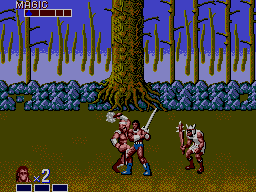 El manejo del juego no podría ser más sencillo, con un botón habilitado para el salto y otro para el mandoble, se pueden realizar numerosas combinaciones, que nos permitirán saltar sobre nuestro enemigo, cargarlo, lanzarlo a cierta distancia o invocar una magia. Los mapeados de las fases nos brindarán en varios casos la oportunidad de librarnos fácilmente de nuestro enemigo lanzándolo por un barranco, sólo hay que esperar a que estén en la posición adecuada, lo cual le da cierto componente de estrategia al juego, pero cuidado, porque nosotros podemos sufrir idéntica suerte. Al inicio del juego debes de optar por una de las tres magias antes mencionadas, el fuego es la magia más poderosa, pero también la que más pociones necesita para alcanzar su máximo nivel, la tierra es la intermedia y el trueno es la más débil pero la que se carga con un menor número de pociones. El último recurso ofensivo que resta son los dragones, que debes de arrebatar a las amazonas que los montan; exiten tres tipos, el primero es el conocido como "pata de pollo", que ataca barriendo a los enemigos con su cola, el segundo es el dragon azul, que lanza una llamarada hacia el suelo, y el tercero es el dragon rojo (que en en versión de MS es azul, como el segundo tipo de dragón, limitaciones de la veterana de las Sega), que escupe bolas de fuego. Desgraciadamente, se echa en falta la opción de dos jugadores, que se ha perdido respecto a las versiones de Mega Drive o System 16.