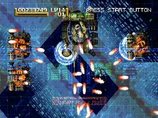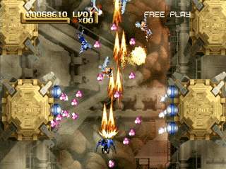 Gráficos: tanto las naves como los escenarios son de un diseño y definición impresionantes, y aporta una gran innovación al género: añade una tercera dimensión (visual) con la que se consiguen unos efectos de puro vértigo. Todo se funde a la perfección, tanto los elementos 2D como los 3D, de manera que parece un juego de una consola de nueva generación. Gracias a las 3D, los jefes se transforman, giran, pasan por encima y por debajo de nosotros... vuelvo a mencionar el jefe final... También hay que resaltar los impresionantes efectos especiales: chispas, impactos de bala, explosiones (atentos cuando estallen los jefes finales... impresionante)... pero hay un lado malo, y es que a veces hacen que la imagen se ralentice un poco (pero casi nada). Sobresaliente, sin duda. Lo mejor, el diseño general (mención especial a los escenarios) y la imaginería del juego, que generan una ambientación inigualable y asombrosa a cada momento.